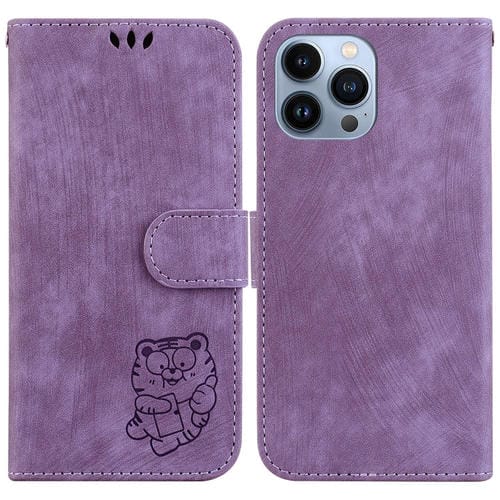 For iPhone 15 Pro Little Tiger Embossed Leather Phone Case (Purple)