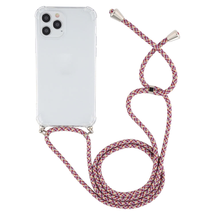 Funda para iPhone 15 Pro TPU Transparente a Prueba de Golpes Cuatro Esquinas con Cordón (Púrpura Rojo)