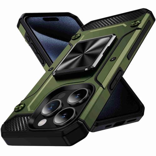For iPhone 15 Pro Phone Case with Metal Kickstand Shockproof (Olive Green)