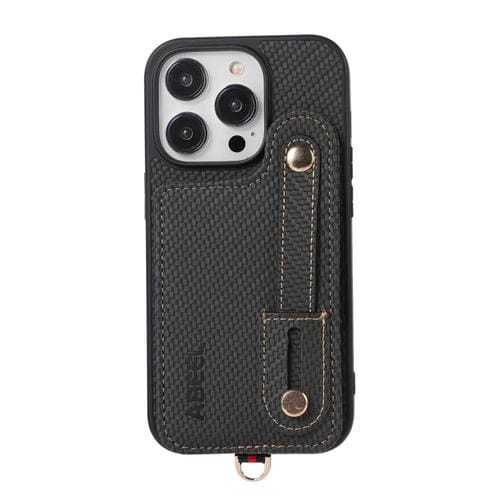 For iPhone 15 Pro Max ABEEL Carbon Fiber RFID Card Holder Phone Case (Black)