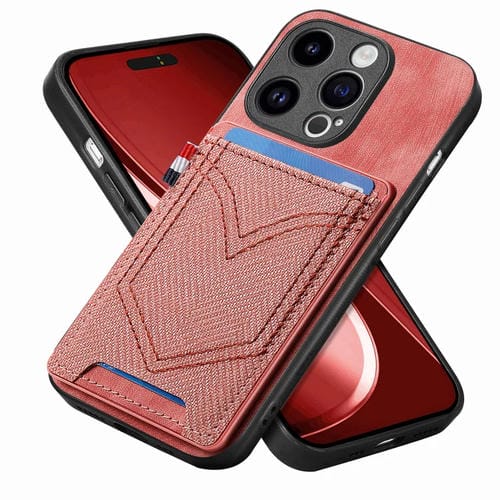 Funda para Teléfono iPhone 15 Pro Max Denim Texture Leather Skin con Ranura para Tarjeta (Rosa)