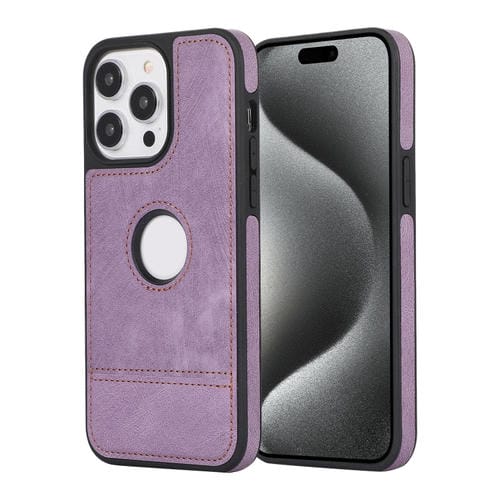 Funda para iPhone 15 Pro Max Empalme Costura Caja de Teléfono de PU con Recorte (Púrpura)