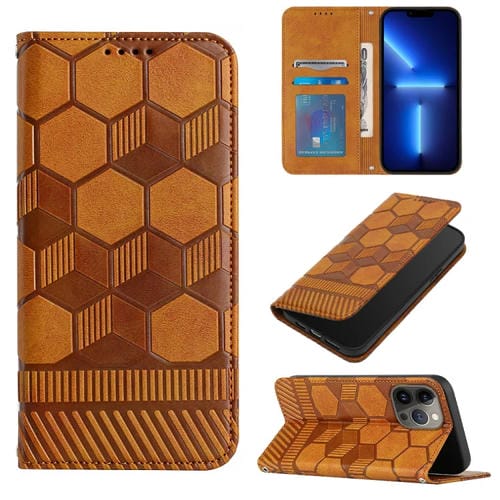 Funda de Teléfono para iPhone 15 Pro Max con Tapa de Cuero Magnético Textura de Fútbol (Caqui)