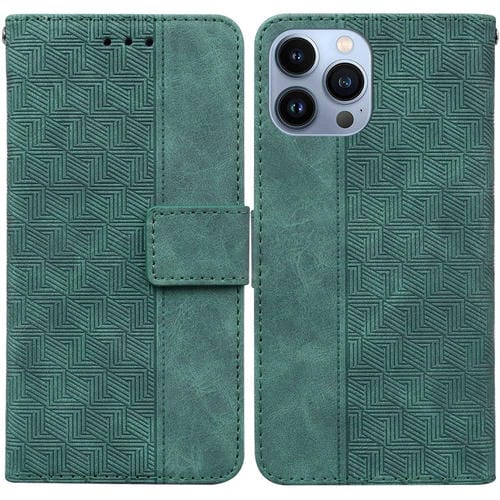 Funda de Teléfono para iPhone 15 Pro Max Cuero Relieve Geométrico (Verde)