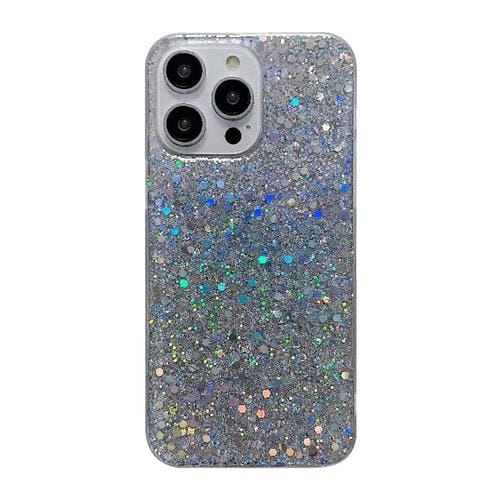 Funda para Teléfono iPhone 15 Pro Max Glitter Lentejuelas Epoxi TPU (Plateado)