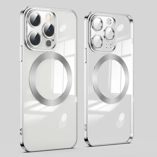Protector de Lente para iPhone 15 Pro Max Magsafe Caja de Teléfono Galvanizada (Plata)