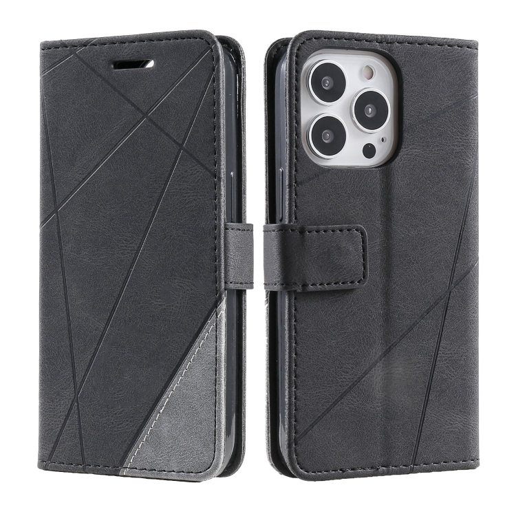 Funda para teléfono iPhone 15 Pro Max Skin Feel Empalme Cuero (Negro)
