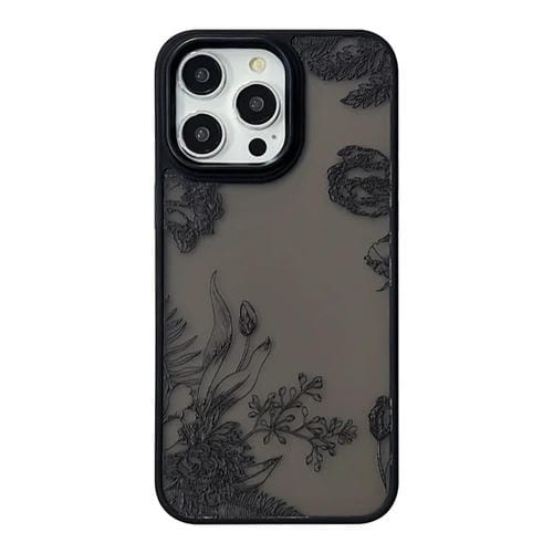 Funda para Teléfono iPhone 15 Pro Max Skin Feel Matte TPU + PC a Prueba de Golpes (Flor Negra)