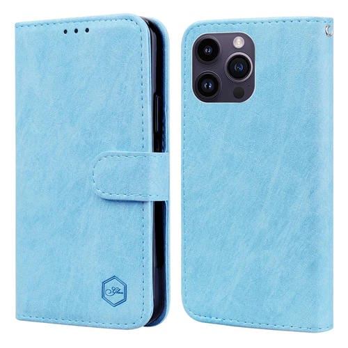 Funda para teléfono iPhone 15 Pro Max Skin Feeling Oil textura de cuero PU + TPU (Azul Claro)