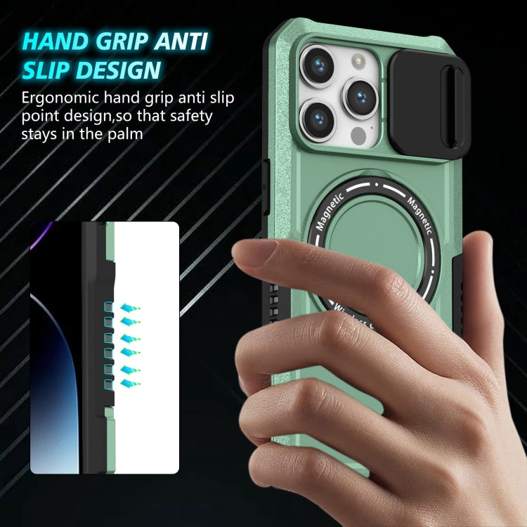 Funda para teléfono iPhone 15 Pro Max Sliding Camshield Magsafe Holder TPU Hybrid (Azul Claro)