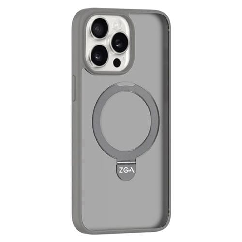 For iPhone 15 Pro Max ZGA Magsafe Holder PC Hybrid TPU Phone Case (Gray)