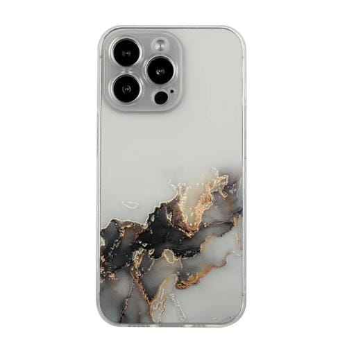 Funda de teléfono TPU iPhone 15 Pro Patrón de Mármol Hueco Borde Recto (Negro)