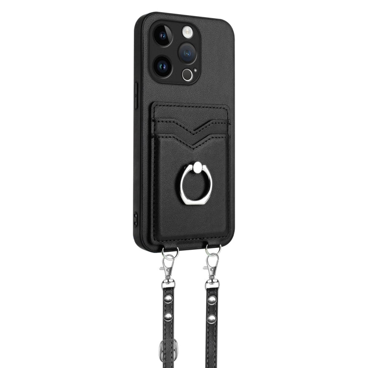 Funda para Teléfono iPhone 15 Pro R20 Soporte Tarjeta Anillo Cuerda Cruzada (Negro)