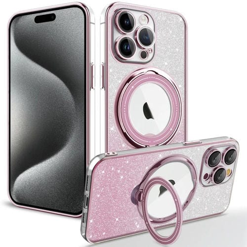 Funda para iPhone 15 Pro Rotación Magsafe Holder Estuche TPU con Brillo Degradado (Rosa)
