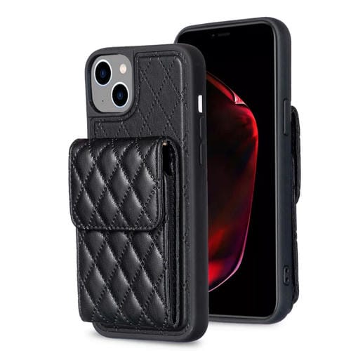 For iPhone 15 Vertical Wallet Rhombic Leather Phone Case (Black)