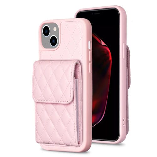 For iPhone 15 Vertical Wallet Rhombic Leather Phone Case (Pink)