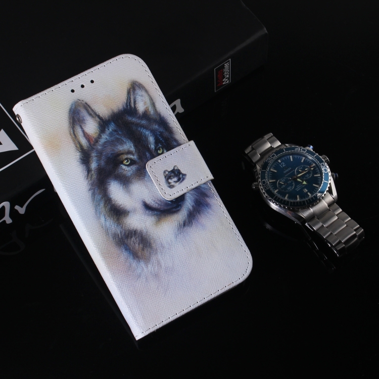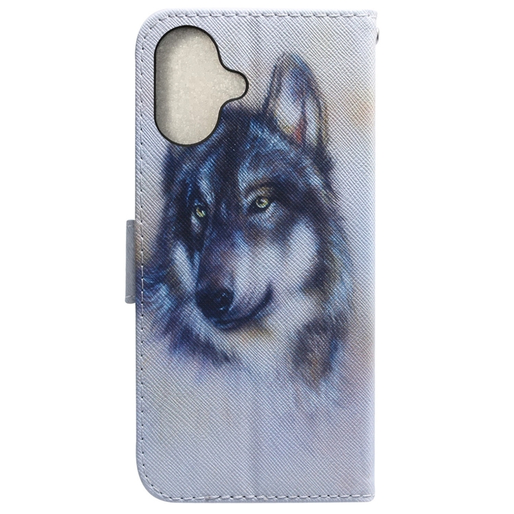 Funda de Cuero para iPhone 16/16 Plus con Tapa y Dibujo Coloreado (Lobo Blanco)