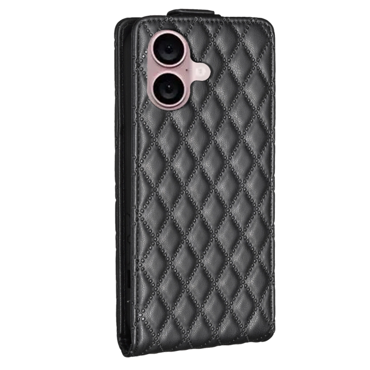 Funda de Teléfono para iPhone 16 Cuero con Tapa Vertical Diamond Lattice (Negro)
