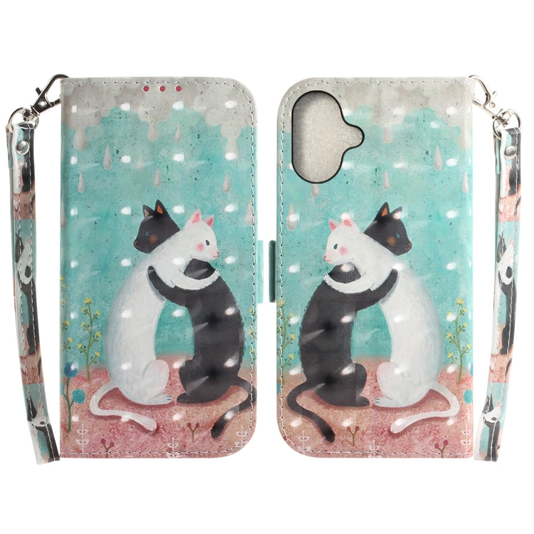 Funda para Teléfono iPhone 16 Cuero con Tapa Horizontal 3D (Gato Blanco y Negro)