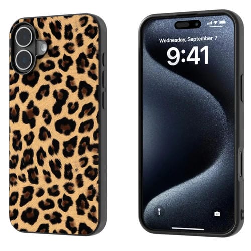 Estuche para Teléfono iPhone 16 Plus Estampado de Leopardo Marco Negro