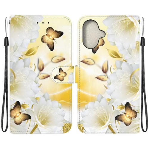 Estuche para Teléfono iPhone 16 Plus Cuero Dibujo Coloreado Textura de Cristal (Epiphyllum de Mariposa Dorada)