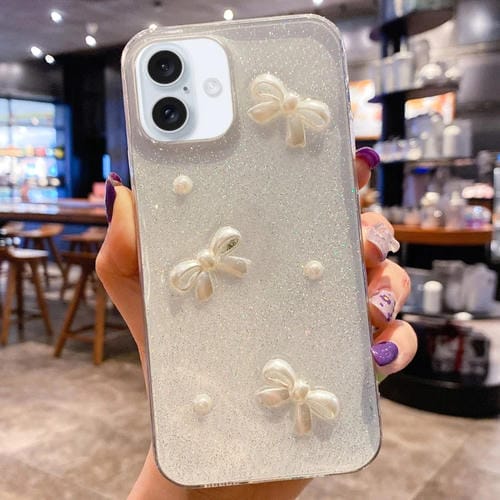 Estuche para Teléfono iPhone 16 Plus TPU Epoxi Purpurina Lazo de Perlas (Tres Nudos)
