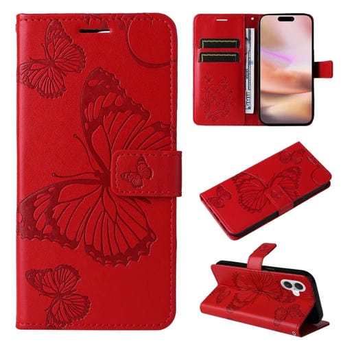 Funda para Teléfono iPhone 16 Plus Cuero con Tapa Patrón Mariposa 3D (Rojo)