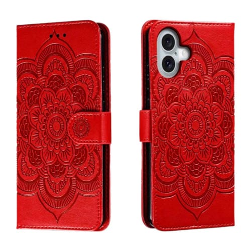 Funda para Teléfono iPhone 16 Plus Cuero Tapa Horizontal Patrón Mandala (Rojo)