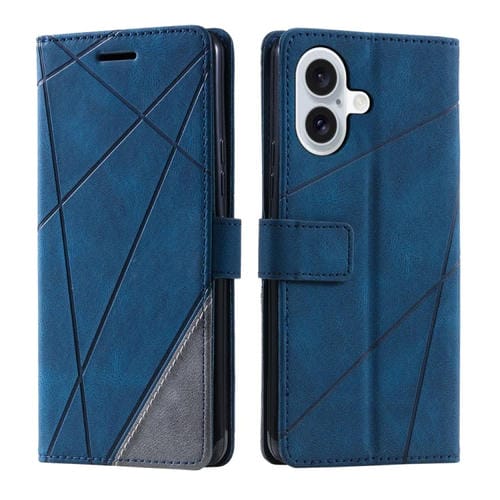 Funda para teléfono iPhone 16 Plus Skin Feel empalme cuero (Azul)