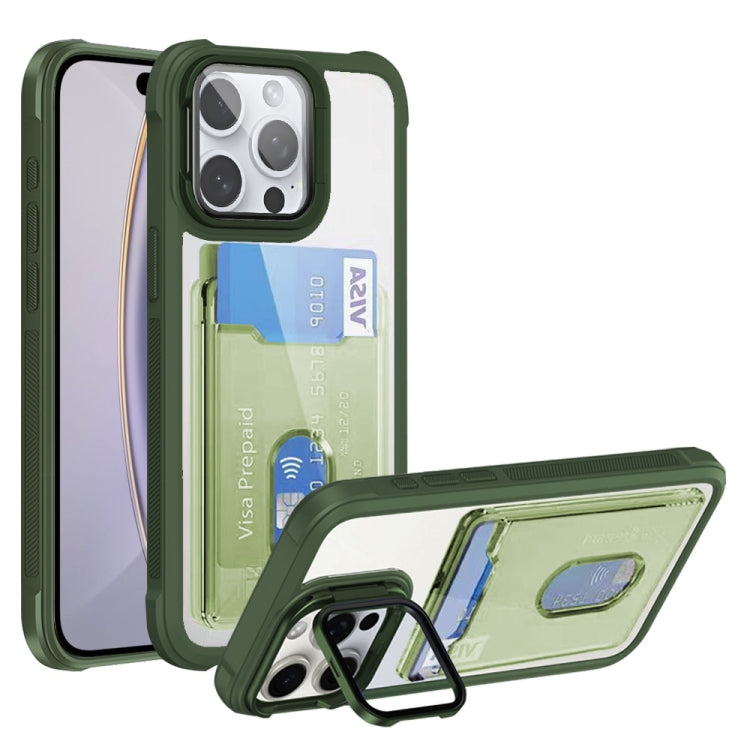 Estuche para Teléfono iPhone 16 Pro TPU Híbrido Acrílico Soporte para Tarjeta (Verde)