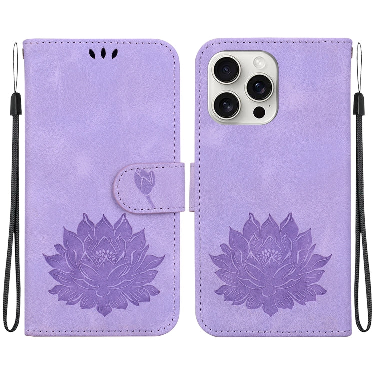 Funda para iPhone 16 Pro Cuero con Relieve de Loto (Púrpura)