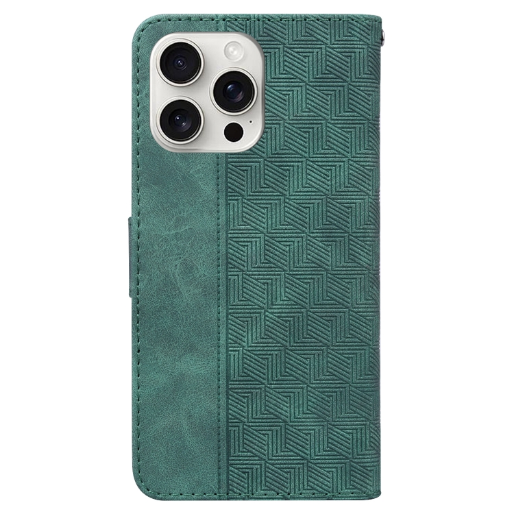 Funda para iPhone 16 Pro Cuero con Relieve Geométrico (Verde)