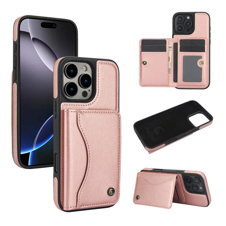 Funda para iPhone 16 Pro Max Awquer Cuero Tapa Horizontal Tarjetas Soporte (Oro Rosa)