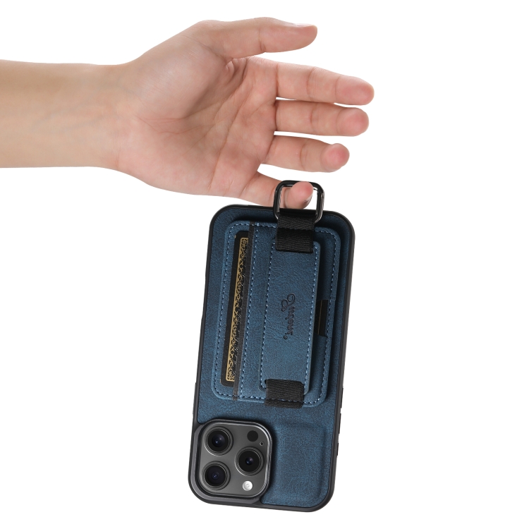 Funda para Teléfono Suteni H13 para iPhone 16 Pro Max con Correa de Muñeca de Cuero Litchi (Azul)