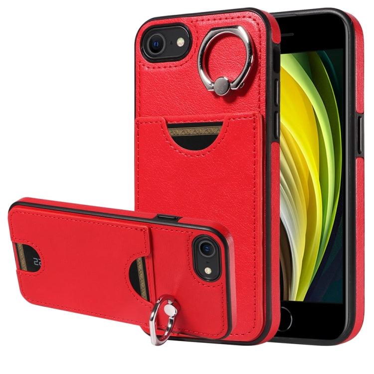 Funda para Teléfono iPhone 2022/2020/8/7 Soporte Anillo Ranura Tarjeta Textura Pantorrilla (Rojo)