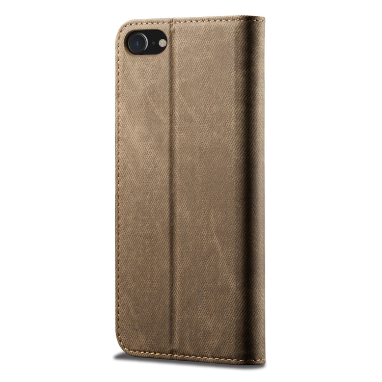 Funda de Cuero para iPhone 6 6S Tapa Horizontal Estilo Casual Textura Mezclilla Soporte Ranuras Tarjetas Billetera (Caqui)