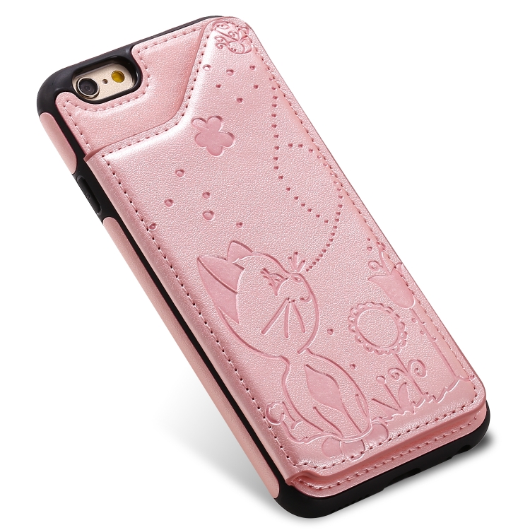 Funda Protectora para iPhone 6 Cat Bee a Prueba de Golpes con Ranuras para Tarjetas y Marco de Fotos (Oro Rosa)