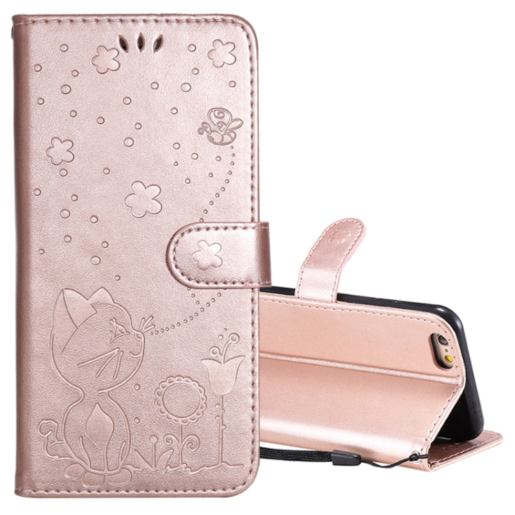 Funda para iPhone 6 Cat Bee Patrón en Relieve Cuero con Tapa Horizontal Soporte Ranuras Tarjetas Billetera (Oro Rosa)