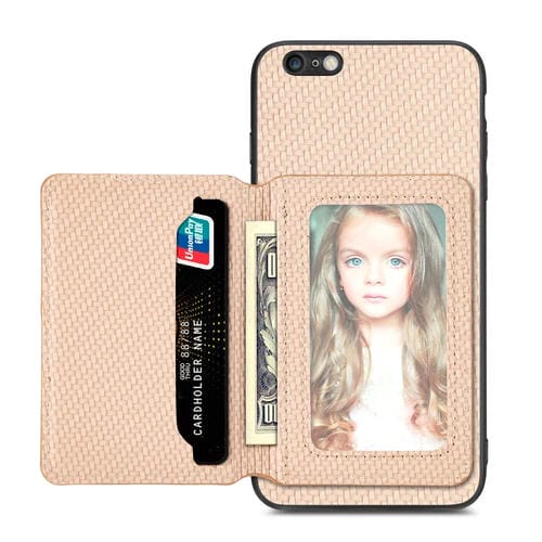 Caja de teléfono para iPhone 6 Plus 6S Plus con bolsa de tarjeta magnética de fibra de carbono (Caqui)