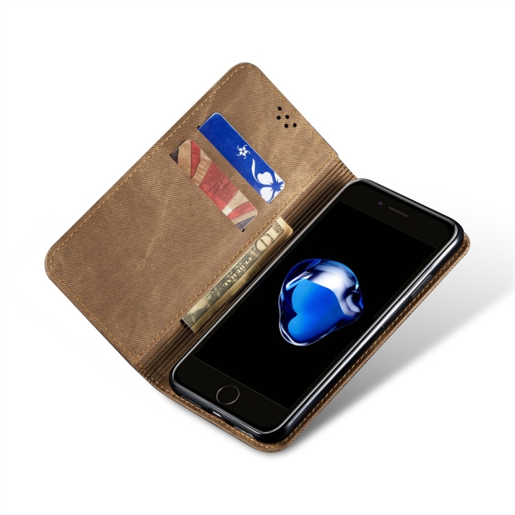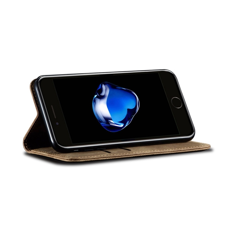 Funda para iPhone 6 Plus 6S Plus Cuero con Tapa Horizontal Soporte Ranuras Tarjetas Billetera (Caqui)