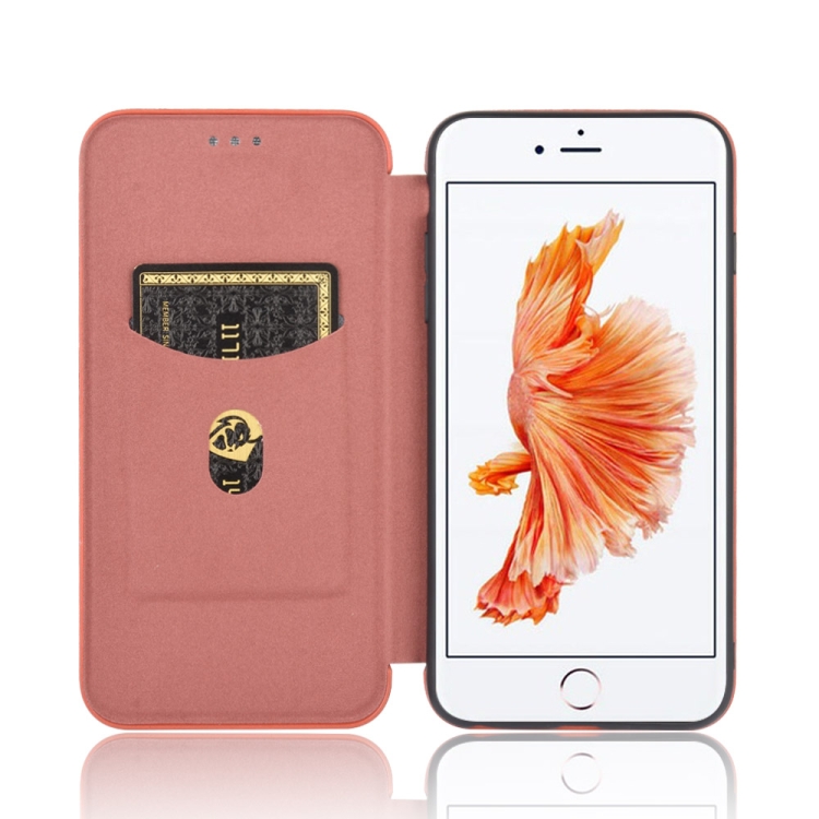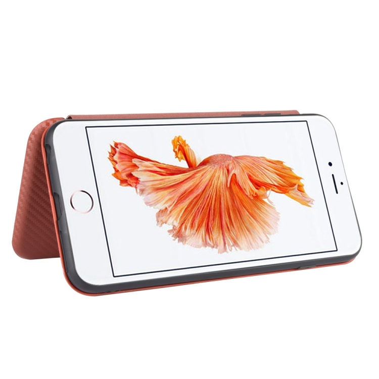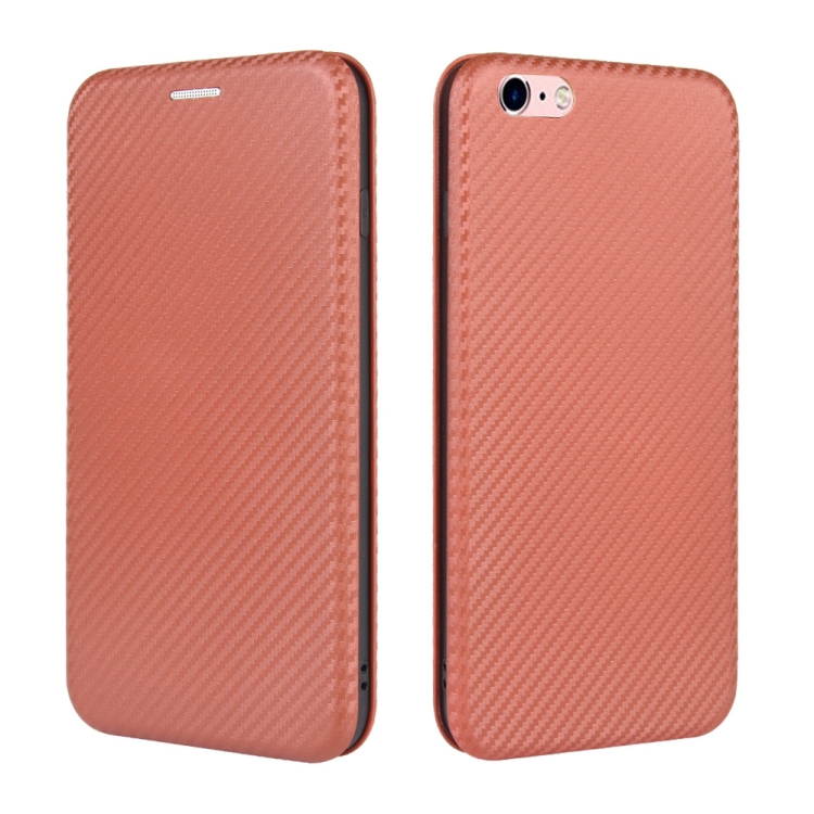 Funda para iPhone 6 Plus 6S Plus Textura Fibra de Carbono Flip Horizontal Magnético TPU PC Cuero PU Ranura para Tarjeta (Marrón)