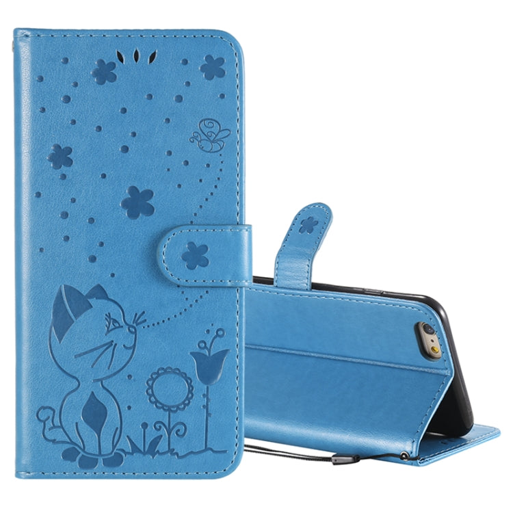 Funda para iPhone 6 Plus Cat Bee Patrón de Relieve Cuero Tapa Horizontal Soporte Ranuras Billetera (Azul)