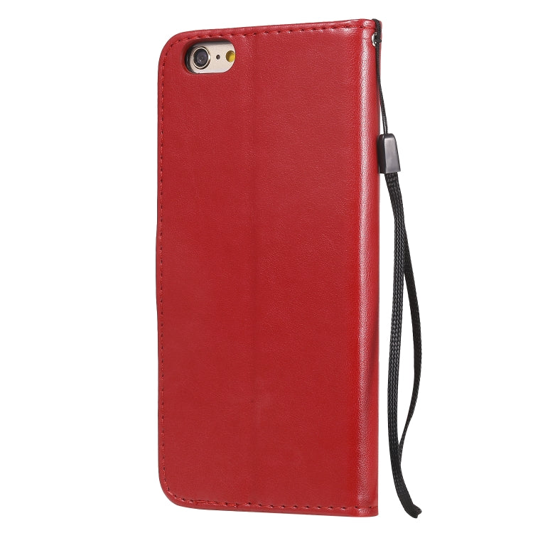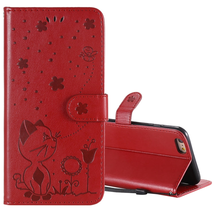 Funda de Cuero Cat Bee para iPhone 6 Plus con Patrón de Relieve, Tapa Horizontal, Soporte, Ranuras para Tarjetas y Billetera (Rojo)