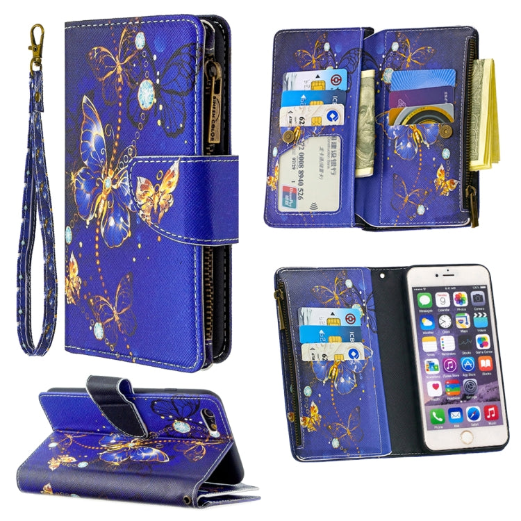 Funda de Cuero para iPhone 6S Plus y 6 Plus con Tapa Horizontal, Soporte, Ranuras para Tarjetas y Billetera (Mariposa Púrpura)