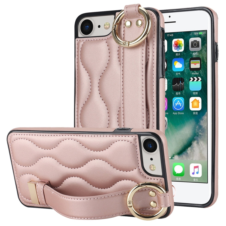 Funda para iPhone 7 Antideslizante Cobertura Completa Anillo PU con Muñequera (Oro Rosa)