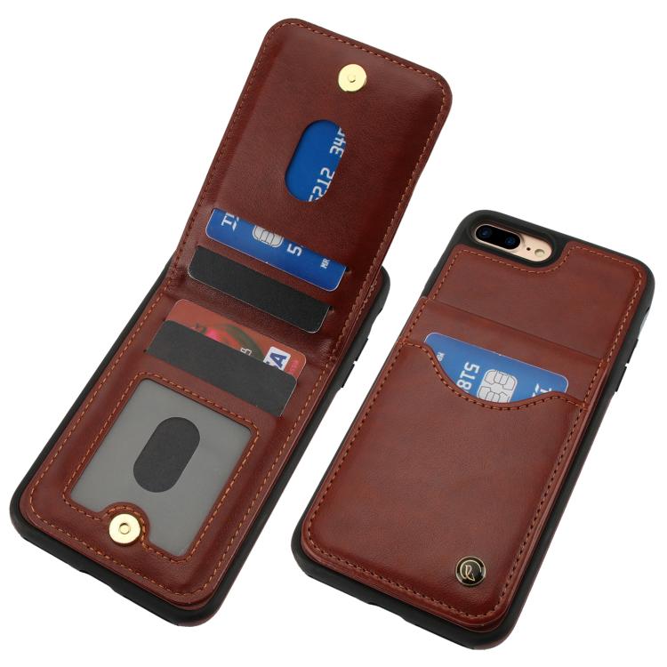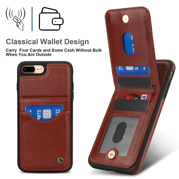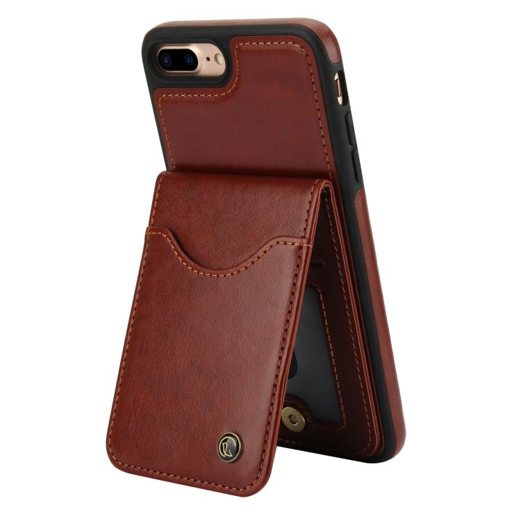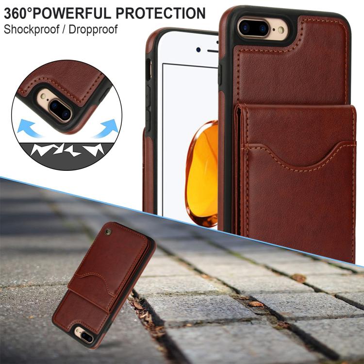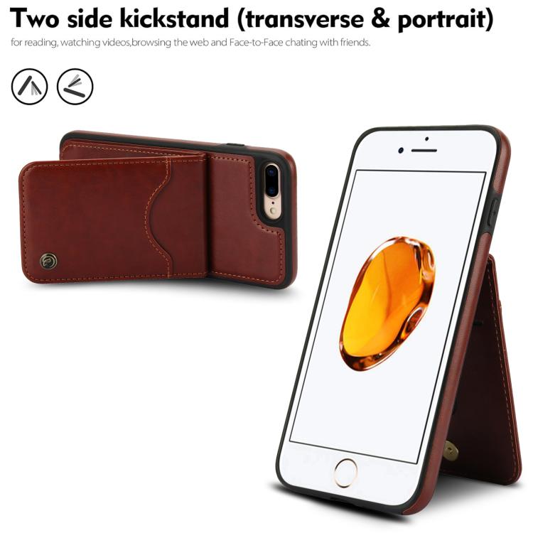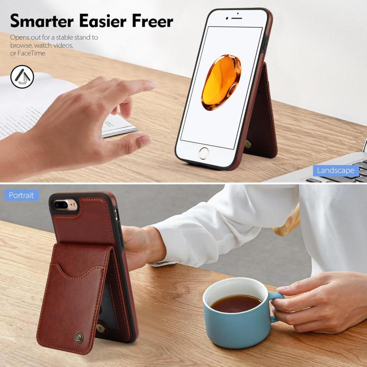 Funda de Cuero Awquer para iPhone 7 Plus/8 Plus con Tapa Vertical para Tarjetas y Soporte (Marrón)