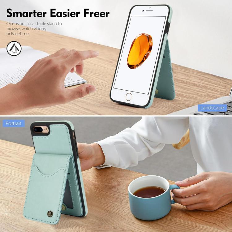 Funda de Cuero Awquer para iPhone 7 Plus/8 Plus con Tapa Vertical para Tarjetas y Soporte (Verde)