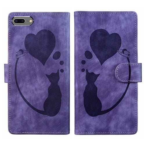 Estuche para Teléfono iPhone 7 Plus/8 Plus Cuero Relieve Gato y Corazón (Púrpura)