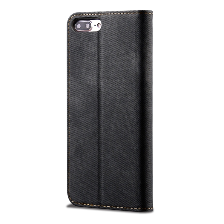 Funda para iPhone 7 Plus 8 Plus Cuero Tapa Horizontal Casual Textura Mezclilla Soporte Ranuras Tarjetas Billetera (Negro)