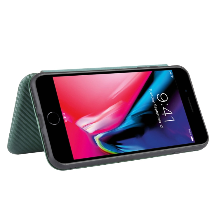 Funda para iPhone 7 Plus 8 Plus Textura Fibra de Carbono Flip Horizontal Magnético TPU PC Cuero PU con Ranura para Tarjeta (Verde)